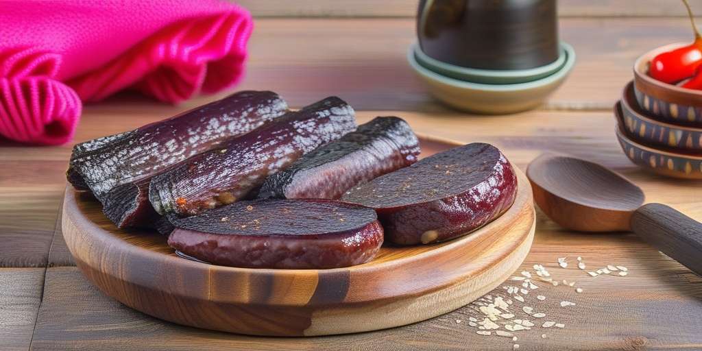 • Sangre de cerdo: es uno de los ingredientes clave que le confiere su color oscuro y su característico sabor.