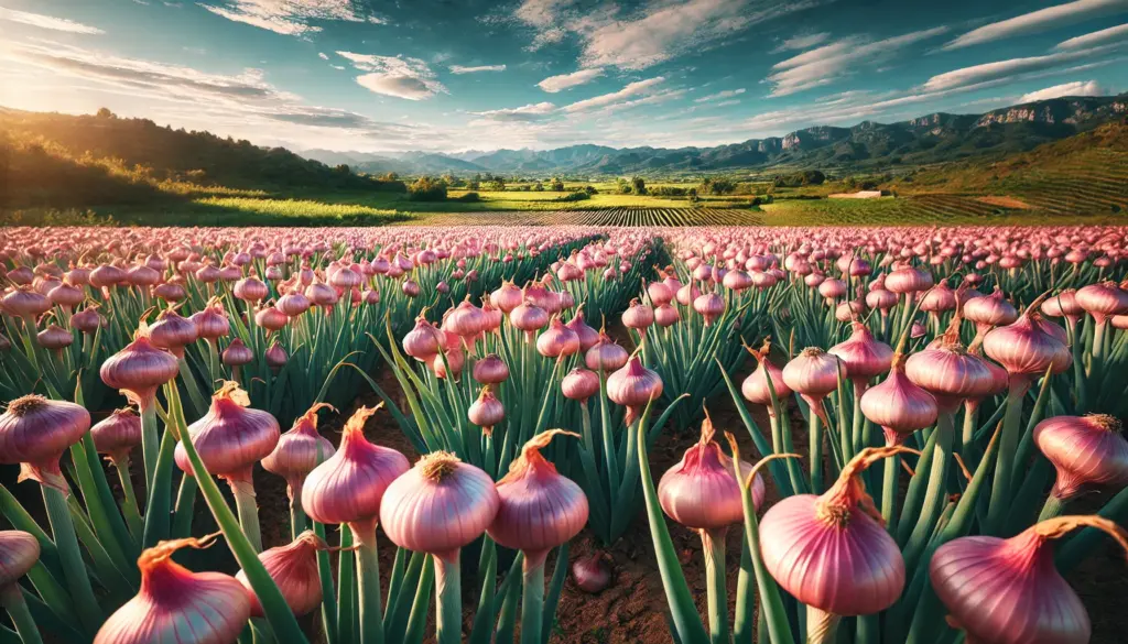 - Color rosado : La cebolla de Figueras tiene una piel de color rosado claro que la hace fácilmente reconocible. Su carne interior es blanca, pero el exterior rosado le da un aspecto atractivo que destaca entre otras variedades de cebolla.