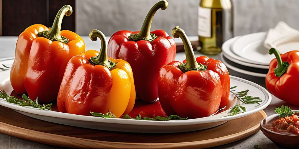 Una vez que los Pimientos rellenos de carne de la Rioja estén listos, es importante presentarlos de manera atractiva para realzar su apetitosa apariencia. Puedes colocarlos en una fuente o plato grande, asegurándote de que estén bien acomodados y que se vean en todo su esplendor. Para un toque decorativo, puedes espolvorear un poco de perejil fresco picado por encima.